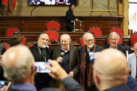 Dopo la cerimonia, è stato circondato da amici, giornalisti e fan — tra cui anche chi scrive — desiderosi di stringergli la mano, abbracciarlo e testimoniargli quanto la sua arte abbia segnato le loro vite. Molti lo hanno ringraziato con sincera emozione, ricordando l’apprensione vissuta lo scorso agosto per le sue condizioni di salute: rivederlo presente e partecipe, in un contesto tanto solenne, è stato come un piccolo miracolo laico.