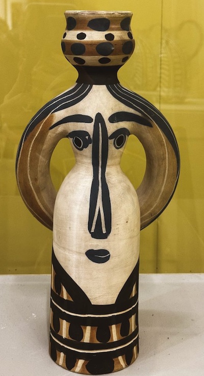 La mostra si conclude con una sezione dedicata alle cosiddette arti minori. Durante gli anni Quaranta e Cinquanta, Picasso collaborò con il laboratorio Madoura di Vallauris, creando centinaia di opere in ceramica. Vasi, piatti, placche e sculture traducevano in forme tridimensionali i motivi emblematici della sua pittura: tori, arlecchini, figure femminili e animali. In questo ambito, così come in quello dei linoleum, l’artista spagnolo dimostrò che per lui l’arte non seguiva un sistema gerarchico: ogni tecnica e ogni materiale potevano essere elevati a linguaggio universale.