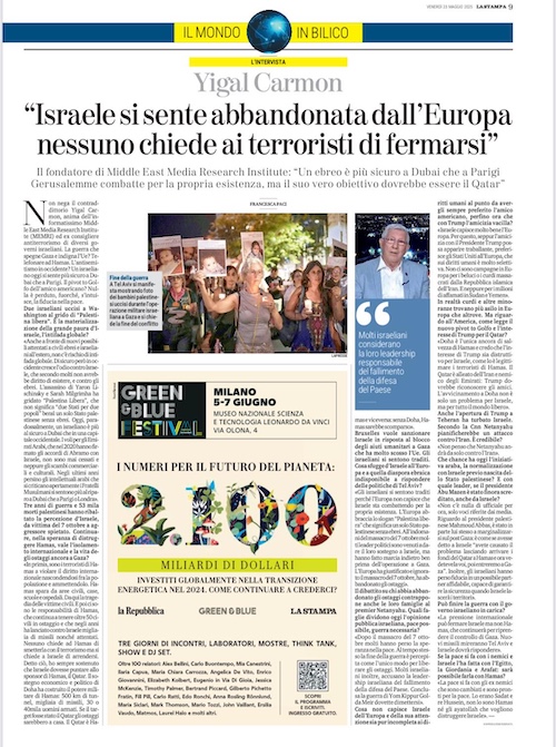 Non nega il contraddittorio Yigal Carmon, anima dell’informatissimo Middle East Media Research Institute (MEMRI) ed ex consigliere antiterrorismo di diversi governi israeliani.