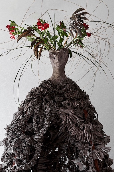 Chiara Camoni fa composizioni ecologiche con foglie arbusti e paglie varie, tema che non è una novità da oltre sessant'anni, l'uso di piante nelle opere d'arte se ci si ricorda di Piero Gilardi (1942-2023), noto per i suoi celebri "Tappeti-Natura" che  riproducevano fedelmente piante, prati, foglie e ortaggi, animando il clima di cambiamento dei primi anni '60, non era tra i primi.