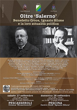 Sabato 27 a Pescasseroli e domenica 28 a Pescina si è tenuto il convegno "Oltre Salerno, Bendetto Croce, Ignazio Silone e la loro attualità politica" con gli interventi tra gli altri di Luciano D’Alfonso (presidente regione Abruzzo), Stefania Giannini (ministro della Pubblica Istruzione), Gianni Letta (politico), Marco Pannella (leader radicale), Fulco Lanchester (professore). Ha moderato Alessio Falconio (direttore di Radio Radicale).Video-messaggi di Fausto Bertinotti (politico), Giuseppe Galasso (storico), Mons. S.E. Pietro Santoro (Vescovo dei Marsi).