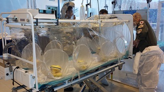 Intanto, i militari dell’aeronautica italiana stanno organizzando corsi e addestramenti straordinari per gli operatori delle diverse amministrazioni dello stato che potrebbero essere investiti nel caso precipiti la situazione. In questo siamo all’avanguardia, grazie a un impegno e in un investimento di risorse che dura da anni e che oggi potrebbe tornare molto utile con l’utilizzo di un brevetto inglese: una particolare barella per il trasporto dei malati.