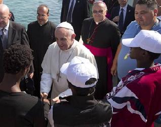 Gesti delicati, gesti inaspettati. Come una corona di fiori gettata in mare o la stretta di mano a un gruppo di immigrati. Papa Francesco è sbarcato a Lampedusa, isola di speranza, meta e rifugio per migliaia di uomini costretti a fuggire dalle proprie terre al di là di quel mare che divide e nasconde agli occhi quotidianità fatte di guerre, fame, carestie.