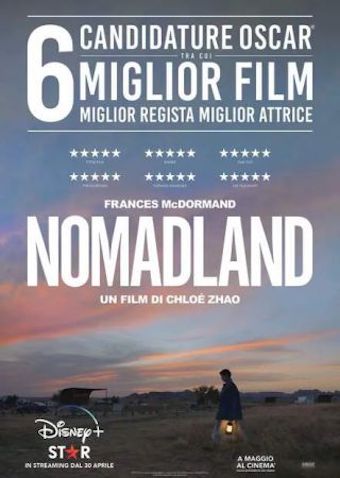 Disponibile su Disney+ e nelle sale ora di nuovo aperte dopo il lockdown, Nomadland, film scritto, diretto e montato da Chloé Zhao, vincitore del Leone d'oro a Venezia, ha anche ottenuto 3 Premi Oscar come miglior film e per miglior regia e migliore attrice protagonista.