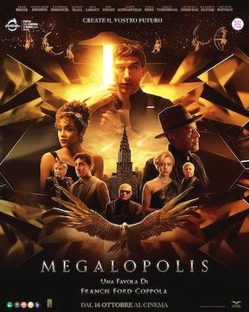 Presentato prima a Cannes poi al recente Festival del Cinema di Roma, Megalopolis, scritto, diretto e prodotto da Francis Ford Coppola, è un film molto particolare che il regista ottantacinquenne è riuscito finalmente a realizzare dopo 40 anni di tentativi falliti, quando ha ripreso in mano le redini del progetto pagando di tasca sua una somma astronomica.