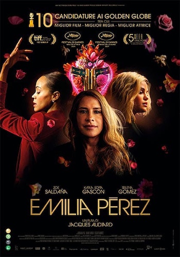 Premiato al Festival di Cannes, Emilia Pérez di Jacques Audiard ha ottenuto 7 candidature e vinto 3 Golden Globes, ha avuto 4 candidature agli European Film Awards, 9 candidature a Critics Choice Award. Il film racconta la storia di Manitas del Monte, feroce boss di un cartello messicano che decide di cambiare sesso e di non soffocare più la sua natura femminile a lungo repressa in un contesto maschilista e criminale. Pertanto fa rapire Rita Moro Castro, giovane avvocato, per organizzare un piano per simulare la sua morte nei riguardi di moglie e figli e ricominciare la sua vita altrove… di Giovanna D’Arbitrio