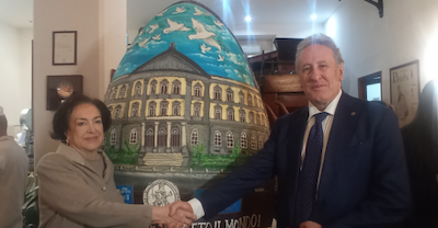 Alla presenza del Rettore della Università Federico II, Matteo Lorito, di noti esponenti della cultura napoletana e di molti giornalisti, Marisa Del Vecchio, Ceo di Gay-Odin, ha spiegato come è nata l’idea di dedicare Il Grande Uovo all’antica e prestigiosa Università napoletana, un simbolo di Cultura e Pace.