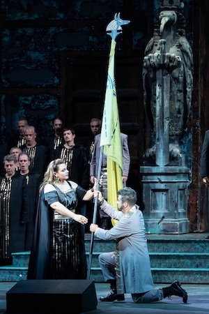 Pur smagliante all’ingresso delle due Primedonne, l’antefatto cede progressivamente il passo alla stupefacente impresa canora di Eszter Sümegi, un’Aida di impatto scenico tale da esondare subito in platea.