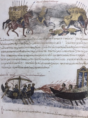 Nascondere la debolezza, mostrare la forza. Fu questa la strada delle spie di Bisanzio. Scrive Breccia: “Lasciar intuire la propria potenza militare era una regola aurea dell’intelligence bizantina”, ma “alcuni segreti andavano custoditi a ogni costo: primo fra tutti, il fuoco greco”, l’arma più micidiale in possesso della Nuova Roma. “Nessuno riuscì a violarlo – annota l’autore del saggio – e ancora oggi non si conosce l’esatta composizione del combustibile capace di incendiare il mare attorno alle navi nemiche, condannando i loro equipaggi a una fine terribile”.
