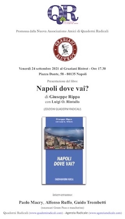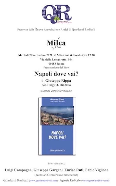A Napoli il 24 e a Roma il 28 di settembre è stato presentato il nuovo libro di Giuseppe Rippa con Luigi O. Rintallo Napoli dove vai? (Edizioni Quaderni Radicali).