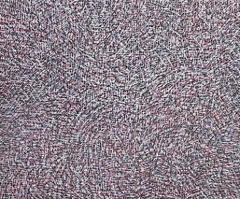 Una superficie vibrante come se avesse vita propria, una trama fatta di componenti che tutte insieme creano la textura del volume o della porzione di spazio rappresentata. Un idioma grafico che esprime stati psichici inconsci ma che potrebbe essere anche la microscopica scansione cellulare di una membrana che avvolge o che copre un corpo, sia esso organico che inorganico.