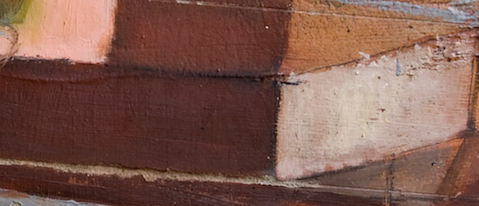 Malinconico e molto materico è, invece, lo spessore della vernice di Luca Zarattini, che con gli alti bordi costruisce i contorni alla figura. Sarà la scelta del supporto o la propensione dell’artista, ma i suoi quadri sembrano composti dalle stesse materie degli oggetti che rappresenta, una sensazione delle superfici che ti stimolano il tatto. Mischia cemento, plastica, metallo e cartone come fa un alchimista e crea sostanze dense che spalma sulla tavola, il supporto delle sue opere.