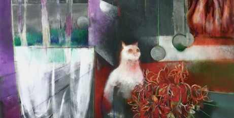 Composizioni che dovrebbero essere statiche ma che Marco Spaggiari rende come se fossero mosse, forse perché realizzate dalle tracce del nervoso pennello e da una vibrante trama di contrasti. Bagliori soffusi, rossi e verdi, si intrecciano come una sequenza sonora che pare voglia assordare chi si trova a vedere le sue opere.