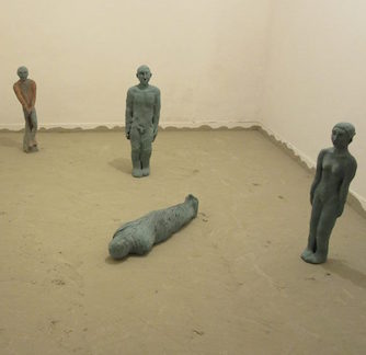 Permanente – impermalente, verità, falsità, prova l’abilità della mente nel discernimento: quattro figure umane, tre erette, una distesa; plasmano lo spazio circostante anch’esso pregno della stessa materia che li costituisce, come se fosse sorto da terra, germogli di verità?