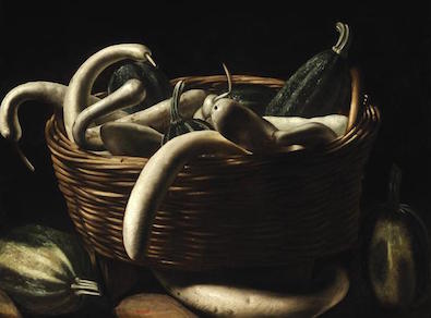 In verità molti usano la frase di Matisse «Io non creo una donna, io faccio un quadro» come inizio della pittura moderna; da questa mostra in poi si deve fare i conti con il grande Caravaggio e anche con gli altri pittori che seguirono tale tendenza, tra cui molti sconosciuti che passarono alla storia come il “Maestro del vasetto”, il “Maestro delle mele rosa dei Monti Sibillini” o come quelli della terza sezione dedicata ai pittori che frequentarono l’Accademia del marchese Giovanni Battista Crescenzi, anche lui pittore presente con le sue opere, nel suo palazzo al Pantheon. Pietro Paolo Bonzi detto “Gobbo dei Carracci”, il “Maestro della natura morta Acquavella”- che molta critica identifica con Bartolomeo Cavarozzi - sono artisti più o meno identificabili nonostante i fantasiosi nomi, a differenza di altri che rimarranno sconosciuti per sempre ma che hanno dato i quadri incredibilmente belli presenti nell’ultima parte della mostra al secondo piano, come il quadro della fiasca spagliata con i fiori, dove si notano i bei movimenti delle corde di paglia che avvolgono il recipiente snodarsi in forme riccamente decorative e il quadro con le zucchine lunghe che pare escano dalla cesta come serpenti in movimento; nature morte dalle proprietà cinetiche, un ossimoro già barocco.