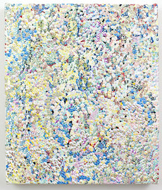 E se di una natura morta non si tratta, si tratta di un coacervo di forme pigmentose opportunamente composte, come alla Francesca Antonini Arte Contemporanea, dove Gregory Hayes in “I am the sun” , realizza una mostra pregna di quella metabolizzazione dell’esperienze dell’espressionismo astratto americano e della gestualità istintiva di Jackson Pollock e della meticolosità di Agnes Martin: “alla base della sua pratica è la componente processuale e organica della pittura, insieme all’analisi e sintesi dei vari elementi che ne compongono la sintassi”.