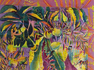 Al Montoro 12 Contemporary Art, Nicholas William Johnson in “Dewdrinker”, titolo della mostra, personifica con i suoi dipinti di frutta colui che beve la rugiada al mattino percependo il liquore aromatizzato del petalo di rosa e provocando particolari conoscenze sensuali del mondo vegetale rievocando un’utopia di Thomas More.