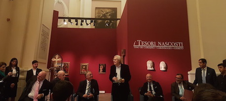 Ora, però, e fino al ventotto maggio, non lo si può pienamente godere, perché è frazionato dai pannelli posti per la mostra “I tesori nascosti” (150 opere di collezioni private), a cura di Vittorio Sgarbi. Che è una mostra molto bella. Imperdibile, come si scrive nei supermercati indicando un'occasione eccezionale. Per vederla, bisogna sapere che la Pietrasanta è nel centro antico di Napoli, non lontano dalla chiesa gotica di San Pietro a Maiella, vicino a quella, tappezzata di magnifici intarsi di marmi colorati, della Croce di Lucca e attigua alla cappella voluta da Gioviano Pontano, il famoso umanista. In più, come accortamente dicono i cartelli che pubblicizzano la mostra, è a soli duecento metri dal famoso Cristo Velato.