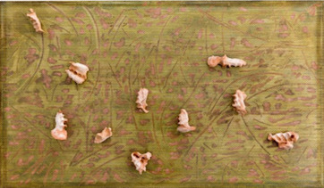 Come ad anticipare quello che sarà la mostra, egli scrive su una parete nell’ingresso della Gagosian Gallery, a matita grossa e con tanto di firma “Scaltra come gesto della mano che carezza le forme equivalenti della terra “; infatti sono piccole quantità di terracotta che vengono impresse dall’impugnatura delle mani e poi roteate, torte su se stesse come a voler creare uno strano sasso, un seme simile al gheriglio di una noce che in numero variabile verranno composte su tele per creare opere d’arte.