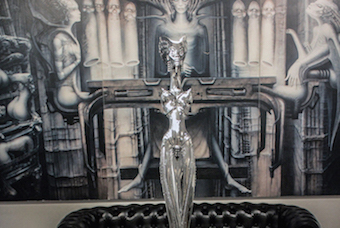 Così, intenti in queste meditazioni, varchiamo finalmente la porta della casa d’arte Artribù, al quinto piano d’un palazzo signorile in stile umbertino a poca distanza dalla Stazione Termini, che proprio in questi giorni ospita una rara e preziosa retrospettiva su Giger, realizzata in collaborazione con il Museo a lui dedicato in Svizzera e con il coinvolgimento personale di Carmen Maria Scheifele Giger, vedova dell’artista.