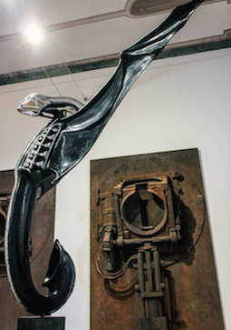 Siamo rimasti particolarmente colpiti dalla sala in cui, tra le massicce riproduzioni in vetroresina d’una macchina compattatrice rinominate “Passages” (Passaggi), identificate da Giger come sorta di congegni vaginali à rebours, ingressi verso quel mondo onirico a cui anelava sempre più di tornare e dove le sue fantasmagorie erano concepite, spicca la scultura denominata “Guardian Angel”, l’angelo custode realizzato dalla fusione delle fattezze di sua moglie con un sassofono alato, ricordo della sua passione per la musica jazz e rappresentazione ideale del suo sé superiore, in bilico tra le dottrine esoteriche di Aleister Crowley e la psicologia del profondo teorizzata da Carl Gustav Jung (anche lui, forse non a caso, svizzero).