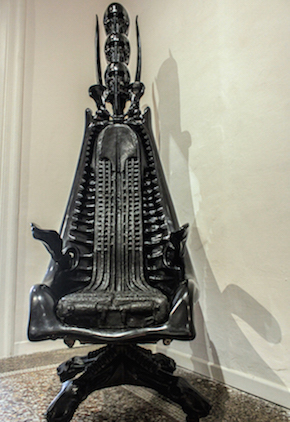 Otteniamo dal gentilissimo Claudio, che ci ha accompagnati in questo percorso con grande disponibilità, il permesso di sederci per un attimo sul trono oscuro già appartenuto al genio svizzero ed è proprio in questo momento che ci sentiamo di omaggiare il ricordo di H.R. Giger con una citazione da un’altra opera cinematografica indimenticabile ed immaginifica, “Videodrome” di David Cronenberg, chiudendo gli occhi per un attimo e declamando mentalmente in suo onore il motto, pronunciato nel finale del film dal protagonista Max Renn/James Woods: “Gloria e vita alla nuova carne!”.
