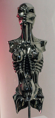 Così ci ritroviamo faccia a faccia con alcune creazioni in qualche modo ormai parte dell’inconscio collettivo come i dipinti “Erotomechanics” in cui anatomie come lamiere contorte e sofferenti si piegano ad amplessi innaturali o il “Bulletboy”, il bambino atomico, feto proiettile realizzato in bronzo con cui Giger da corpo alla sua sfiducia in un futuro negato, segnato da sconvolgimenti termonucleari di là da venire, ed alla sua fobica ansietà nei confronti della riproduzione - di per sé un atto sconvolgente in una realtà apocalittica che non ha più niente d’umano.