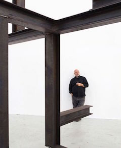 Da quello che ho desunto dal comunicato stampa, la mostra si incentra su quattro opere che nello specifico del suo discorso rappresentano al meglio le sue intenzioni, cioè il raffigurarsi dell'artista in quattro diverse posizioni: in piedi, sdraiato, appoggiato e a braccia aperte. Un kouros dei giorni nostri che noi visitatori dobbiamo immaginare da quattro umili, rozzissimi e grossi pezzi di pesantissimo ferro, ovviamente tagliati a misura, quella da poco descritta, in tre segmenti di doppia trave a t e da una spessa lastra quadrata.