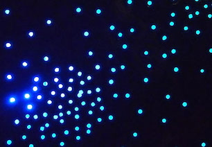 Dopo il frottage urbano, quello dei sampietrini per intenderci, Baldo Diodato sorprende ancora, fa un bellissimo omaggio ai coriandoli di Tano Festa, famosa serie di quadri degli anni ’70, con una reinterpretazione luminosa dei coriandoli stessi, che altro non sono che una miriade di buchi su un fondo scuro da cui viene fuori la luce del pannello sottostante.