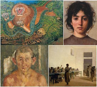 Sembrano smarriti in un mondo sconosciuto e alieno. La follia, nel suo aspetto più brutto, è alienazione e disperazione. Questo ci narrano gli sguardi smarriti dei personaggi di Vincenzo Gemito e di Antonio Mancini. Mentre ci parlano della ipocrisia di questa società, della sua mancanza di verità, i volti deformati disegnati da Francis Bacon. E ci parlano di follia le opere di Francisco Goya, Telemaco Signorini, Fausto Pirandello, figlio di Luigi, Antonio Ligabue e di tanti altri ancora. Una mostra importante di quadri belli e significativi.