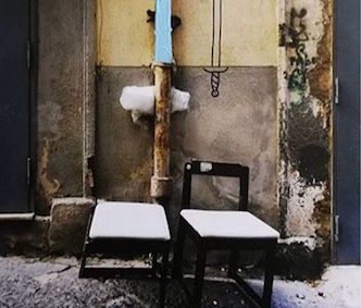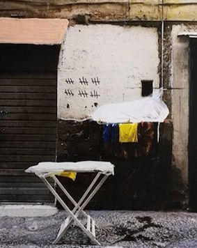 È al di là di una breve striscia di lucidi basoli vesuviani. Sullo sfondo scolorito dei muri, si inseriscono una porta, a volte un'edicola sacra, una scritta. Sono luoghi. Senza persone. Ma che di persone parlano e ne raccontano la storia. Presente, passata, futura. Raccontano della città di Napoli, pur senza il Vesuvio, il mare, i monumenti. Di una città altrettanto vera, fatta di popolo.