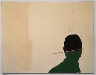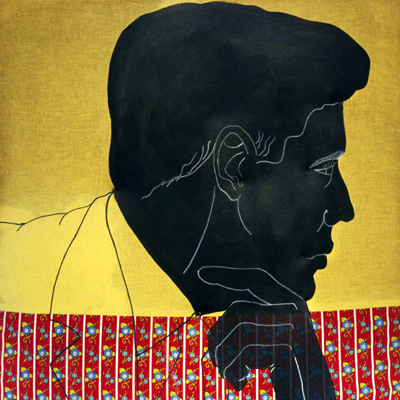 Cesare Tacchi esordisce nel ‘64 con grandi quadri che hanno sagome su fondi damascati, decorazioni tipo tappezzeria. Sono piatte raffigurazioni con qualche imbottitura sulle sedute che da spessore quasi tridimensionale. Visioni in un interno di un angolo di casa resa grottesca da un eccessivo decorativismo, una sottile accusa alla vita borghese, alle formali relazioni, alla falsa quotidianità, forse ascoltando come ogni ventenne di quel tempo The hause of the rising sun degli Animals che in quell’ anno ebbe uno straordinario successo mondiale.