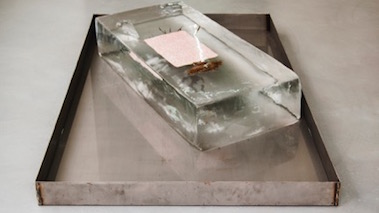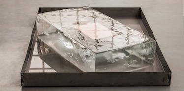 All’ingresso vediamo un parallelepipedo di ghiaccio di qualche metro o più che ha al suo interno delle piante secche e un messaggio scritto dall’artista dal titolo "M’avresti consolato", una rappresentazione inquietante della natura, un’ansia che si scioglie nel tempo sino all’inesorabile fine che avverrà in tre giorni circa, una scultura a termine che pare voglia essere un monito alla caducità della vita, alla temporaneità delle cose.