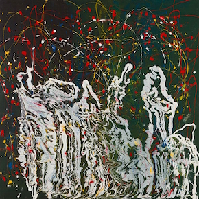 Di certo ci sta la forza cromatica che sa mettere in risalto su superfici lucide che conferiscono all’opera un gioco di lucentezza molto pronunciato come a voler abbagliare chi le guarda, un espressionismo astratto giocato molto sull’attimo fuggente che la realizzazione impone.