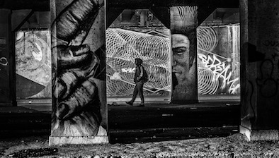 Piena di senso poetico e di una rivisitazione in chiave esistenziale è Over the bridge di Isabella Borrelli che con le sue foto ci mostra il noto quartiere romano della Garbatella in una intima interpretazione. L’artista esegue le foto tra le venti e le cinque del mattino offrendo suggestioni che vanno oltre l’apparente aspetto cromatico.