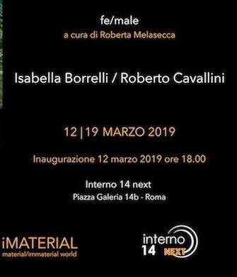 fe/male è laprima iniziativa del progetto iMaterial__material/immaterial world per il 2019, vuole confrontare oltre Isabella Borrelli e Roberto Cavallinianche Antonella Albani e Marco Marassi che saranno presenti in galleria per la prossima esposizione.