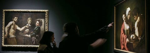 Ora, fino al 14 luglio, possiamo ammirare, nella Reggia-Museo di Capodimonte, la mostra “Caravaggio - Napoli”, che ha sei opere sue, dipinte a Napoli, e altre ventidue degli artisti che qui lo hanno incontrato. Una mostra di grande impatto. Le opere non sono collocate, come accade di solito, nelle normali sale di un museo. Una scenografia geniale, teatrale, ci fa immaginare il pittore percorrere, di notte, vicoli oscuri che svoltano in altri vicoli.