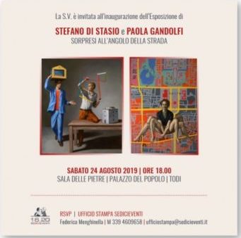 Sabato 24 agosto il Todi Festival 2019 apre con la pittura contemporanea, grazie alla doppia personale degli autori del manifesto 2019 Stefano Di Stasio e Paola Gandolfi a trent’anni dall’ultima personale fatta insieme.