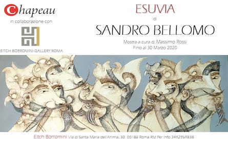 Nel palazzo Pamphilj, uno tra i più importanti e spettacolari palazzi nel centro storico di Roma, che dà su piazza Navona, si è aperta una mostra di Sandro Bellomo, pittore di famiglia leccese, ma nato a New York, organizzata da Chapeau di Massimo Rossi in collaborazione con Etich Borromini Gallery.