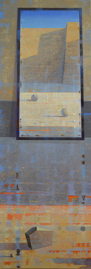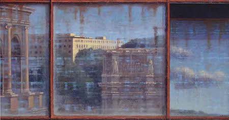 Quello che vorrei evidenziare è un particolare fenomeno che i suoi quadri comunicano a chi li guarda, dato dall’alterazione della visione. Nei suoi quadri si assiste a uno strano effetto visivo, offerto dall’interposizione della trasparenza del vetro che disturba in modo creativo e paradossale la nostra percezione della realtà rappresentata.