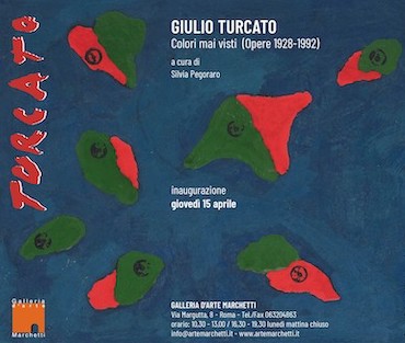 Nella Galleria Marchetti sono esposti 25 meravigliosi quadri di Giulio Turcato (Mantova, 1912- Roma, 1995), mostra dal titolo “Colori mai visti”, che potremmo dire una mini antologica che va dall’inedito dipinto bifronte del 1928-30, su un lato del quale Giulio Turcato dipinge un Interno, e sull’altro un Porto, tra le prime opere dell’artista, fino ad arrivare a una delle sue ultime opere, Dune (1922) di carattere informale, come a testimoniarne l’intero percorso artistico.