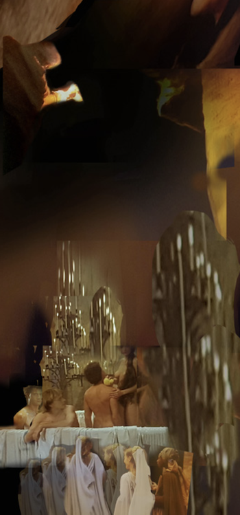 Ai frati Cordiglieri presso i quali Zenone, alias Sebastiano Theus, trascorre la sua ultima parte di vita, Laura D’Andrea ha dedicato più di un quadro. I frati vengono rappresentati come “angeli”, appellativo con cui era solito nominarli frate Cipriani. In un quadro gli “angeli” turbinano nel buio e sembrano venire illuminati solo da un rapido flash. L’artista ha dipinto magistralmente una scena guardando la quale l’osservatore ha l’impressione che gli sia concesso solo un veloce voyeuristico sguardo, poi la visione scomparirà. In questa ‘rapida occhiata’ ci appaiono gli “angeli” seminudi, le vesti scompigliate, volteggiare nello spazio buio mentre si allacciano in peccaminosi amplessi.