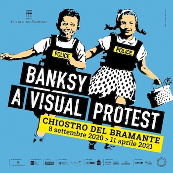 Banksy a visual protest è stata una mostra realizzata a Roma nel Chiostro del Bramante dall’8 settembre 2020 all’11 aprile 2021 in onore del più noto dei writers al mondo, mostra che ha fatto il giro d’Europa e oltreoceano. Banksy è il riferimento di una generazione di street artists che in maniera autonoma, investendo soldi, energie e col rischio di multe e detenzione, violano le leggi dipingendo di nascosto, prevalentemente di notte, i muri della città.