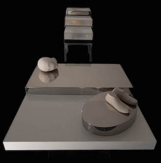 Affamata di curiosità e affascinata da ciò che l’artista ha da spiegarmi, chiedo ulteriori delucidazioni a riguardo. “Visivamente si tratta di un bel contrasto tra sabbia e sassi d’argento, sfruttando il tema degli oggetti riflettenti. I sassi invogliano a camminare, aprendo un cammino allo spettatore. Sono qualcosa che, dalla terra, emerge e rimane a vista. E cos’altro c’è che emerge? La memoria. La memoria vista come fatto diretto, come forza che bisogna trovare in se stessi”.