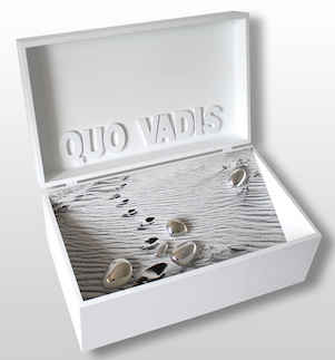 Quella che mi ha colpita di più, di primo acchito, è proprio una delle prime tre opere: Quo vadis. Facente parte, come detto, del trio di opere Odissea, ognuna delle cassette ha un suo titolo: Questo mare è storia, Terra parens omnium e, ovviamente, Quo vadis.