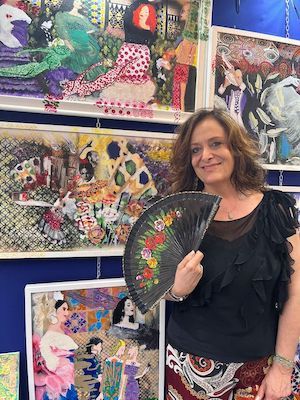 Mi fa notare che in uno dei quadri, nello specifico uno ambientato a Siviglia, in primo piano c’è il suo ventaglio: una chicca che non si nota a primo impatto, ma solo osservando più attentamente la commistione di colori, che delicatamente suggerisce di andare oltre quella che è la superficie delle sue opere. E infatti, conclude dicendo che “La particolarità dei miei quadri è che non dovresti mai finire di guardarli e di osservarli. Ci sono tanti piani di lettura e di profondità”.
