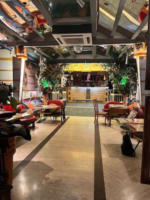 Entro in questo piccolo ma vivace posto, molto suggestivo, e noto subito diversi dipinti appesi alle pareti. Un po’ spaesata e molto curiosa, mi guardo intorno finché non mi viene indicato l’artista, Andrea Modesti. Dopo le presentazioni, andiamo al piano di sopra dove, circondati da altre sue opere esposte, iniziamo una conversazione.