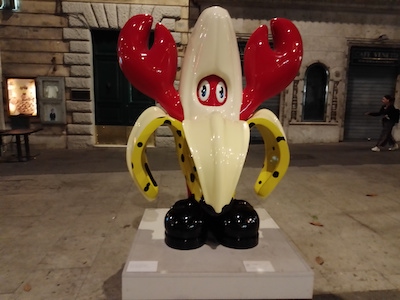 “Se non hanno pane, che mangino brioches!” a “Se non hanno la pizza, che guardino aragoste”, pare che lo abbiano pensato nell’amministrazione capitolina sfidando gli amanti dell’arte. Mi riferisco alle aragoste alte più di due metri circa, una addirittura di sei metri, al centro storico di Roma più precisamente a via Veneto nella parte prospiciente Porta Pinciana.