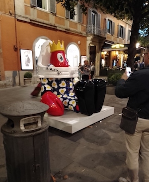 Tornando al ruolo di arte pubblica, tema da dove siamo partiti, è ovvio che i passanti di via Veneto e l’opinione pubblica tutta sia attanagliata dall’angoscioso dilemma, pizza o aragoste?