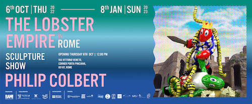 Con questo non metto in discussione le intenzioni di Philip Colbert che come chiunque altro artista può e deve fare quello che vuole ma a chi controlla il territorio qualcosa da dirgli ci sarebbe. Tra l’altro “l’invasione” delle aragoste nella capitale è anche immortalata da una mostra al Museo di San Salvatore in Lauro dall’8 novembre all’ 8 dicembre 2023 dove si possono ammirare oltre alle sculture anche quadri di grande formato che l’artista ha realizzato sempre sullo stesso tema.